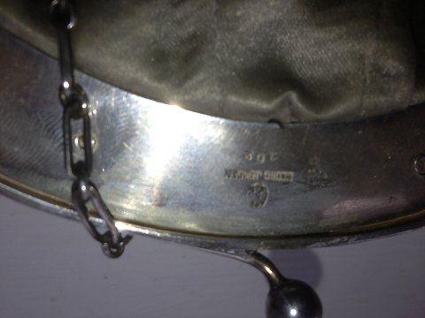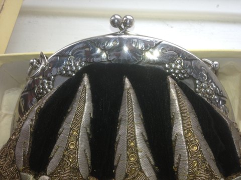 Early Georg Jensen Bag with Silver lock and fantastic embroiding No 102. Measures 15,5cm x 22cm and is in good condition. God silver work, but the bag itself is just fantastic with embroiding with silver threat.