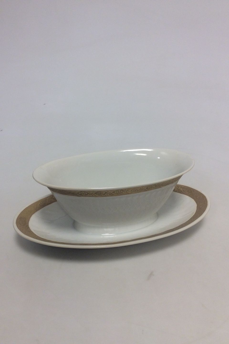 Royal Copenhagen Gold Fan Sauce Boat No 11550. Measures 22cm x 8cm and is in good condition.