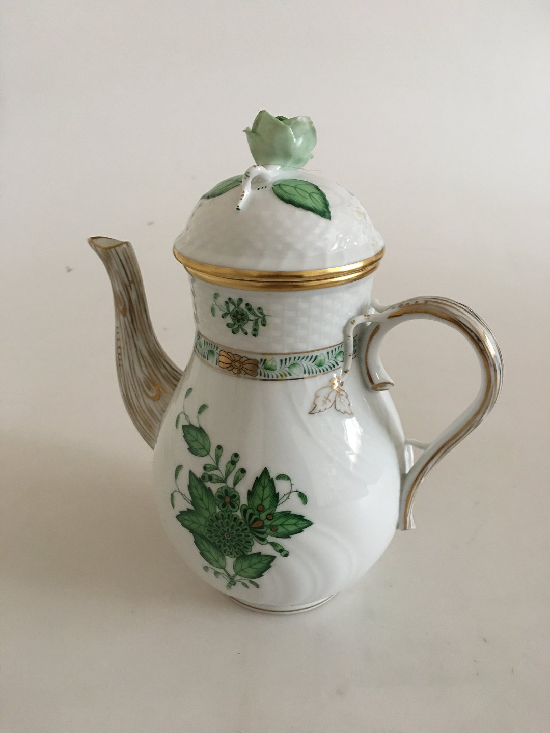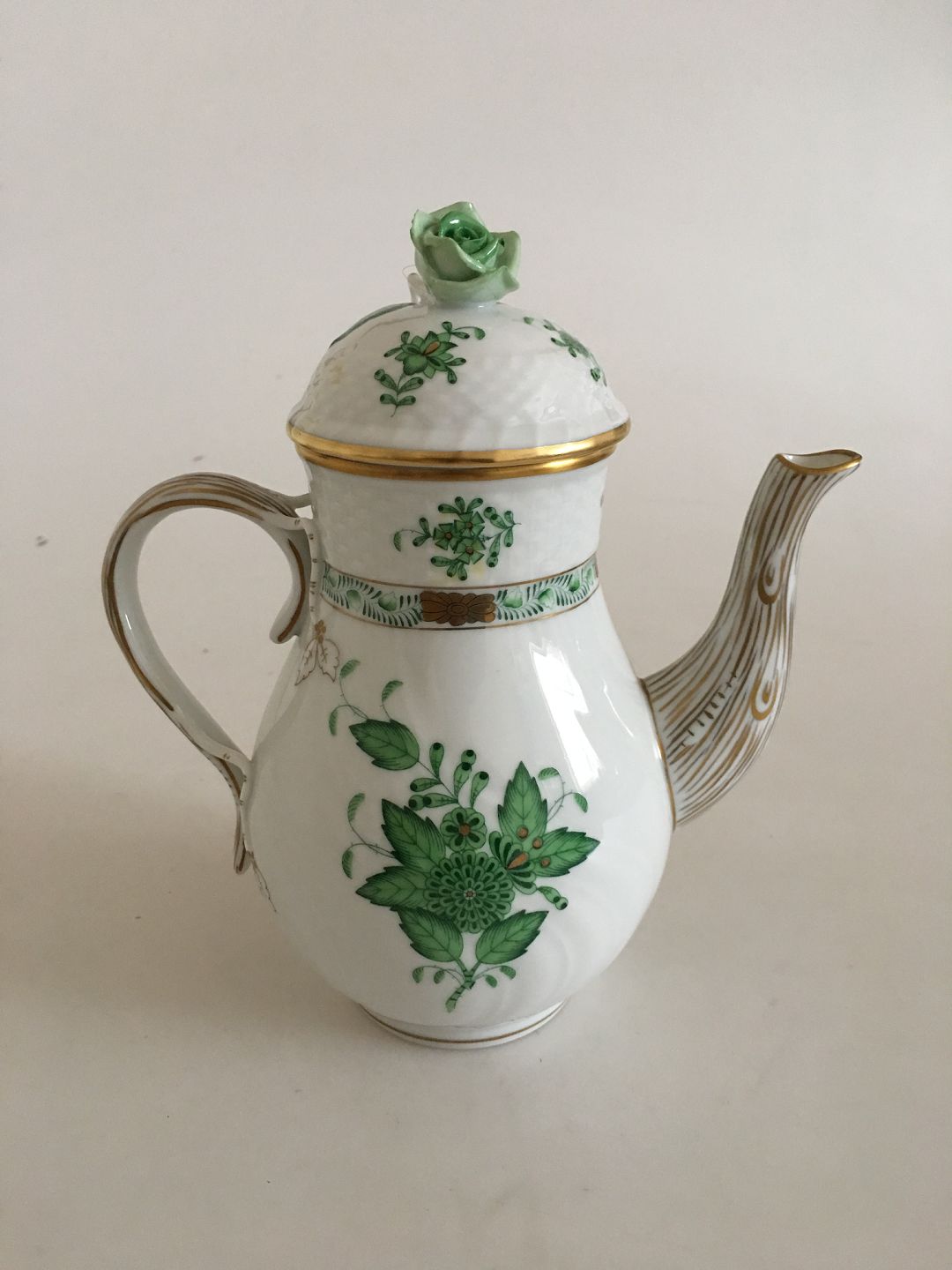Herend Hungarian Chinese Bouquet Green Coffee Pot. Measures 17cm and is in good condition.