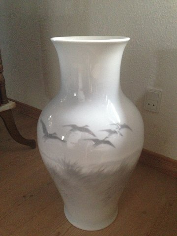 Royal Copenhagen Art Nouveau Unique Vase by Vilhelm Theodor Fischer with Geese from 1927. Measures 53cm high and is in good condition, except from a impact mark on the bottom rim.