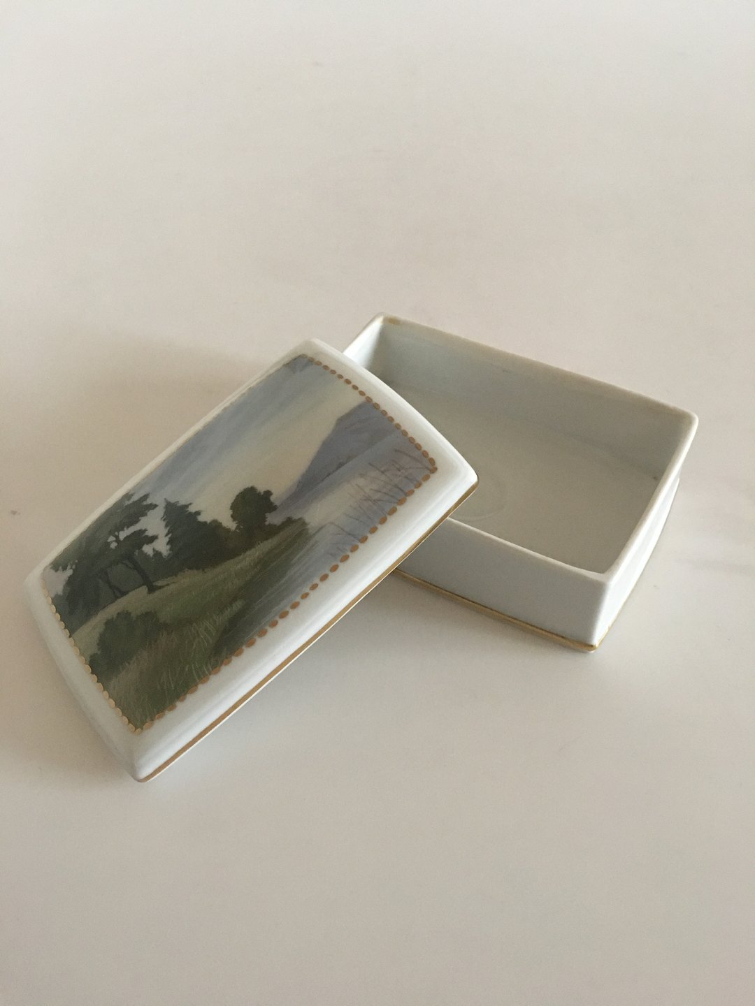 Rosenthal Art Nouveau Lidded dish with landscape motif. Measures 13,5cm x 9,8cm and is in perfect condition.