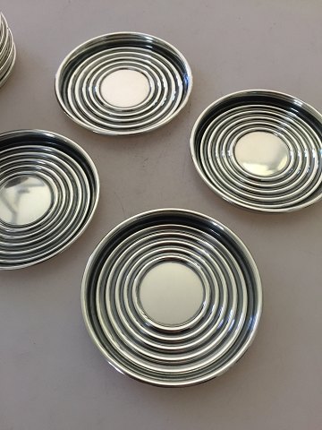 Hans Hansen Sterling Silver Karl Gustav Hansen Glas Coasters. Measures 7,3cm and is in good condition. We currently have 16 in stock.