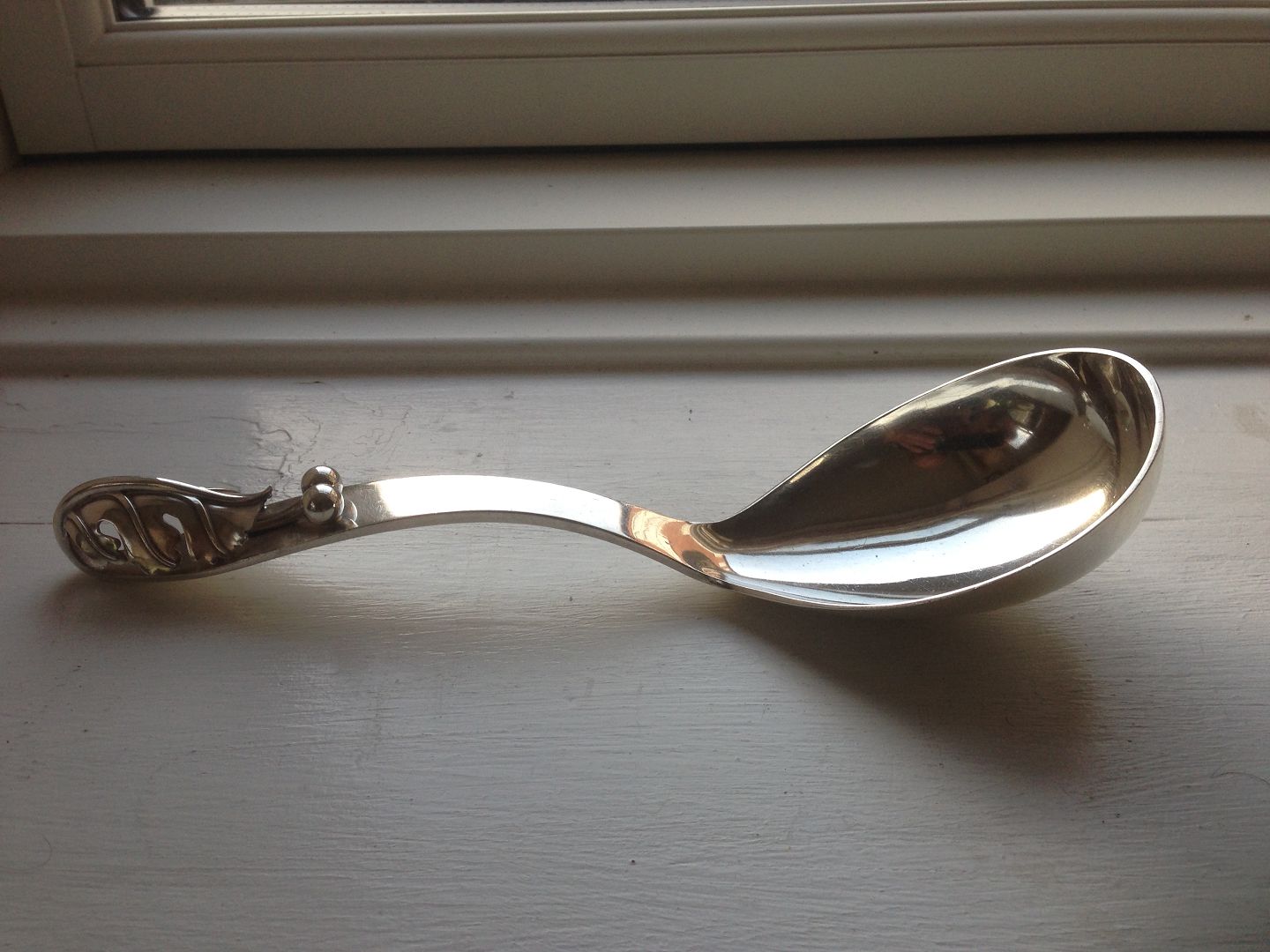 Hans Hansen Sterling silver Serving Spoon desiged by Karl Gustav Hansen 1940. Måler 22,5cm and is in good condition.