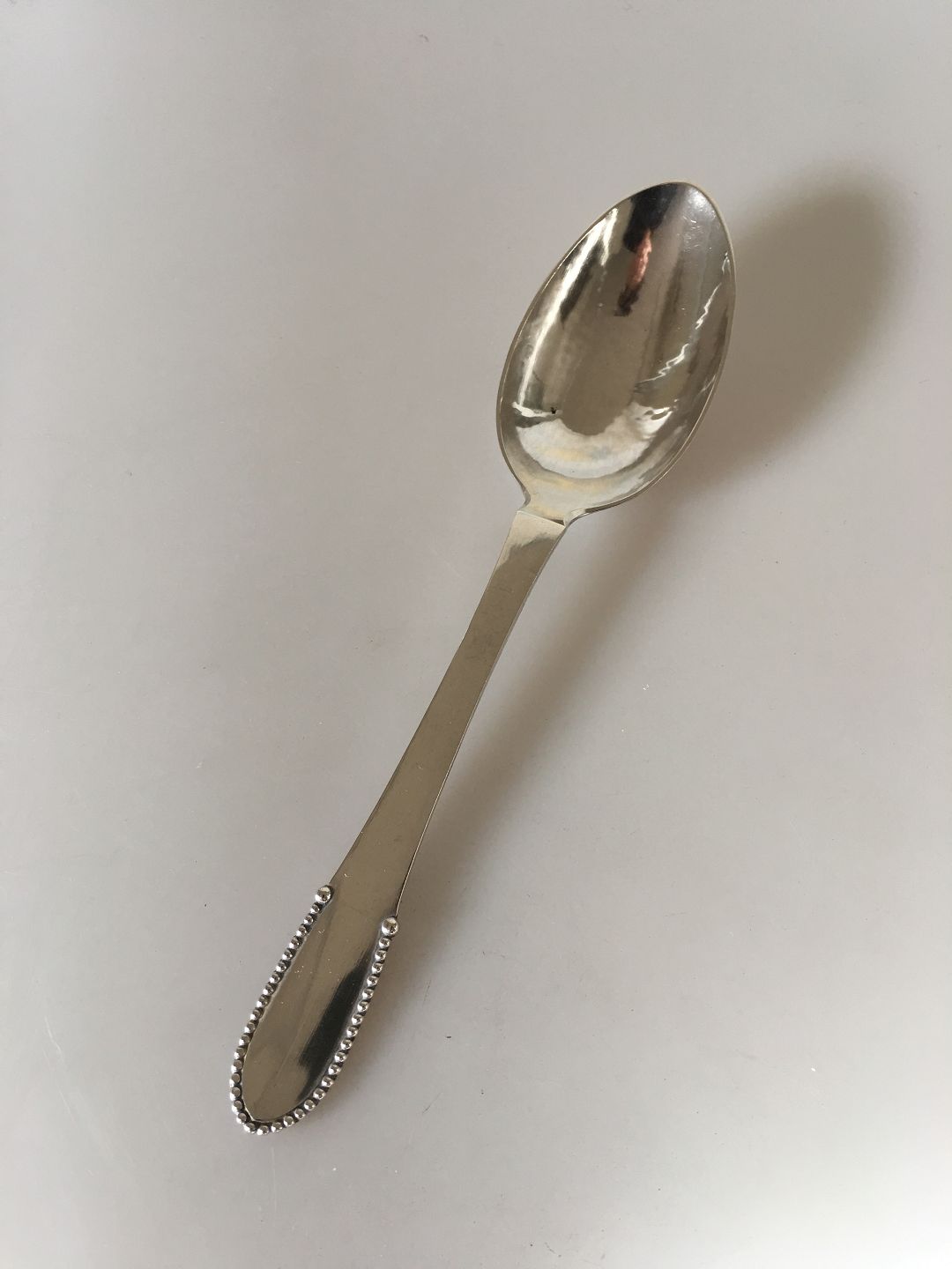 Georg Jensen Sterling Silver Beaded Dinner Spoon No 001. Measures 20.4 cm / 8 1/32 in. Design Georg Jensen 1916.