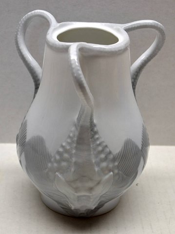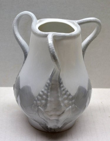 Royal Copenhagen Art Nouveau Vase with 3 Sting Rays on the side and the tails as handles No 294/144. I good condition.