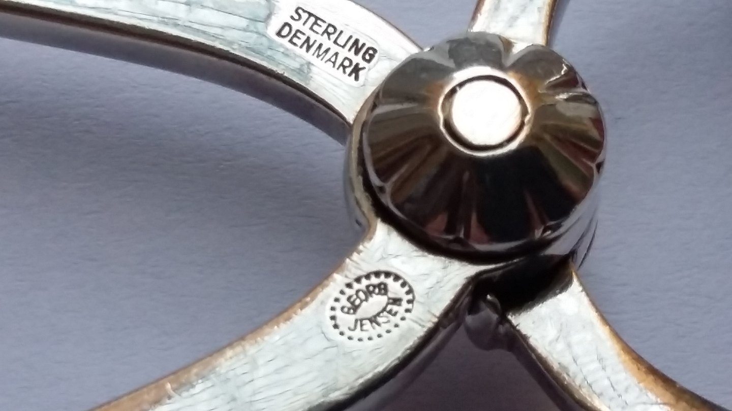Georg Jensen Sterling Silver Acorn Sugar Tongs No 174. Measures 10.3 cm / 4". Design Johan Rohde.