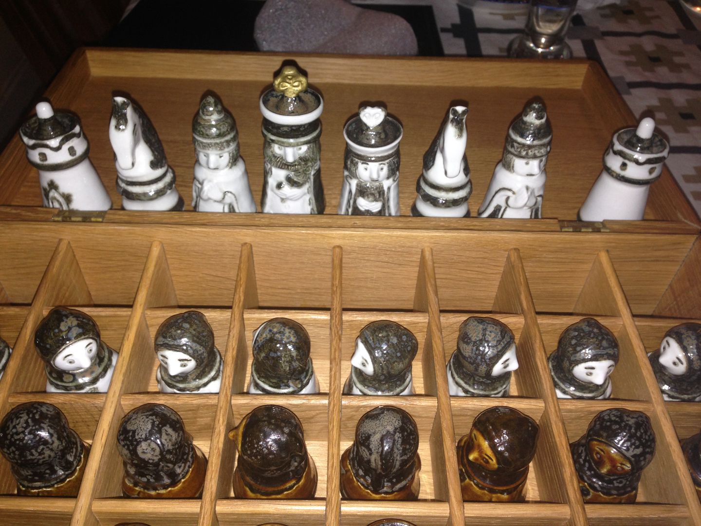 Royal Copenhagen Doreen Middelboe Chess Set and Chess Board. The board measures 49 cm x 49 cm and all pieces are in perfect condition. A set that has to be seen.