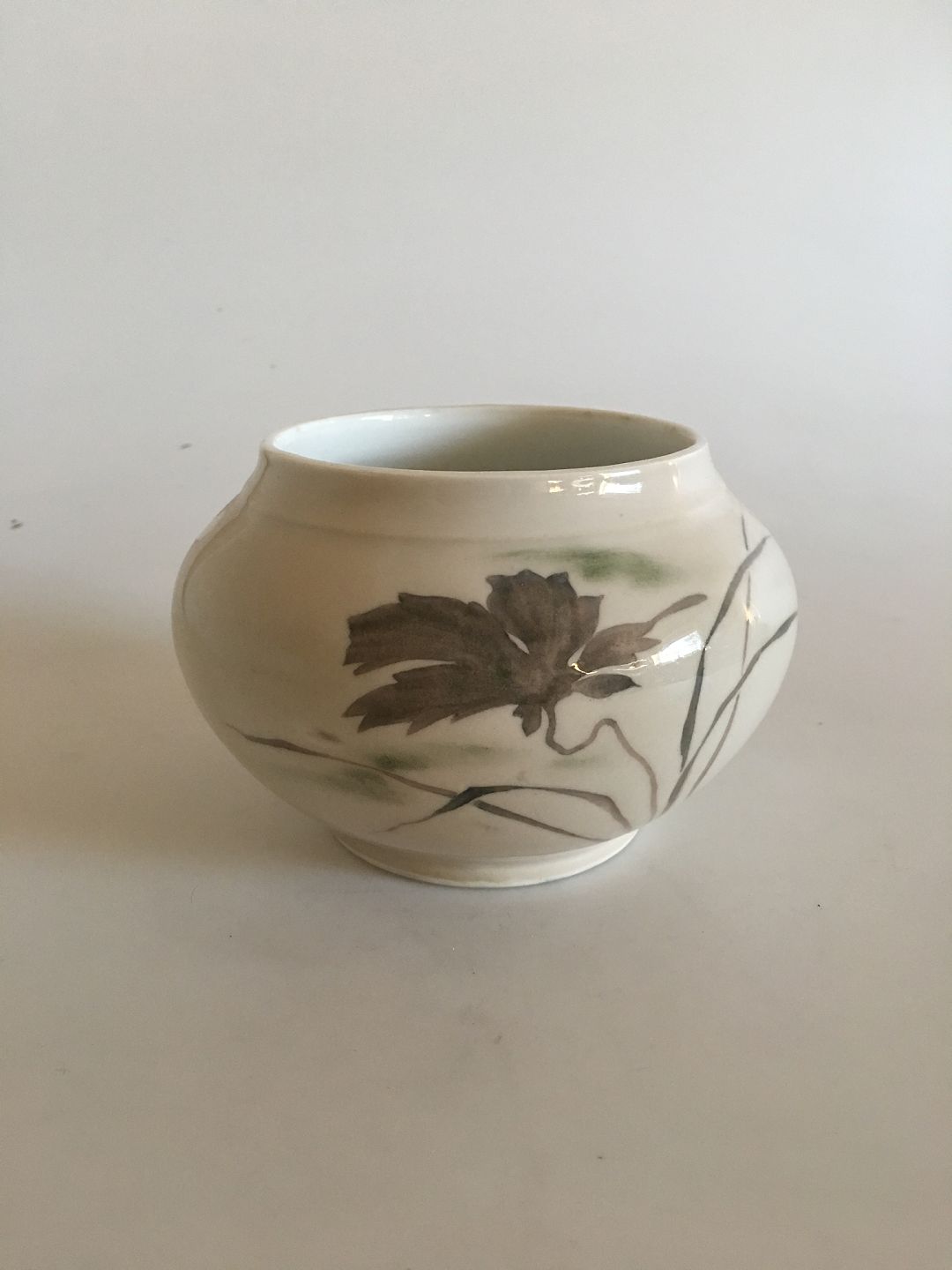 Royal Copenhagen Art Nouveau Unique Vase by Marianne Høst from 1893 No 3837 In perfect condition and has a rare pink color. Measures 16,5cm dia and 10,5cm high.