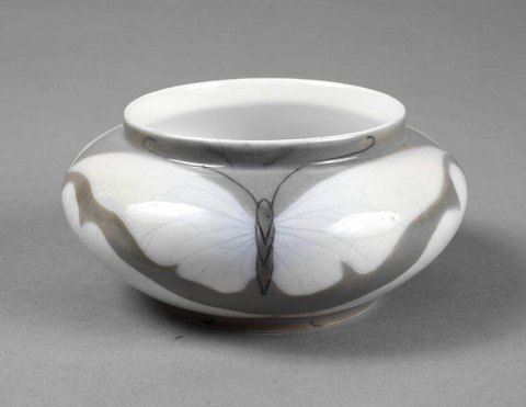 Roya Copenhagen Art nouveau Unique Vase by Anna Jørgensen from 1891 No 2907. Measures 11cm dia and 5cm high. Is in good condition, but has two firing cracks on the inside top rim.