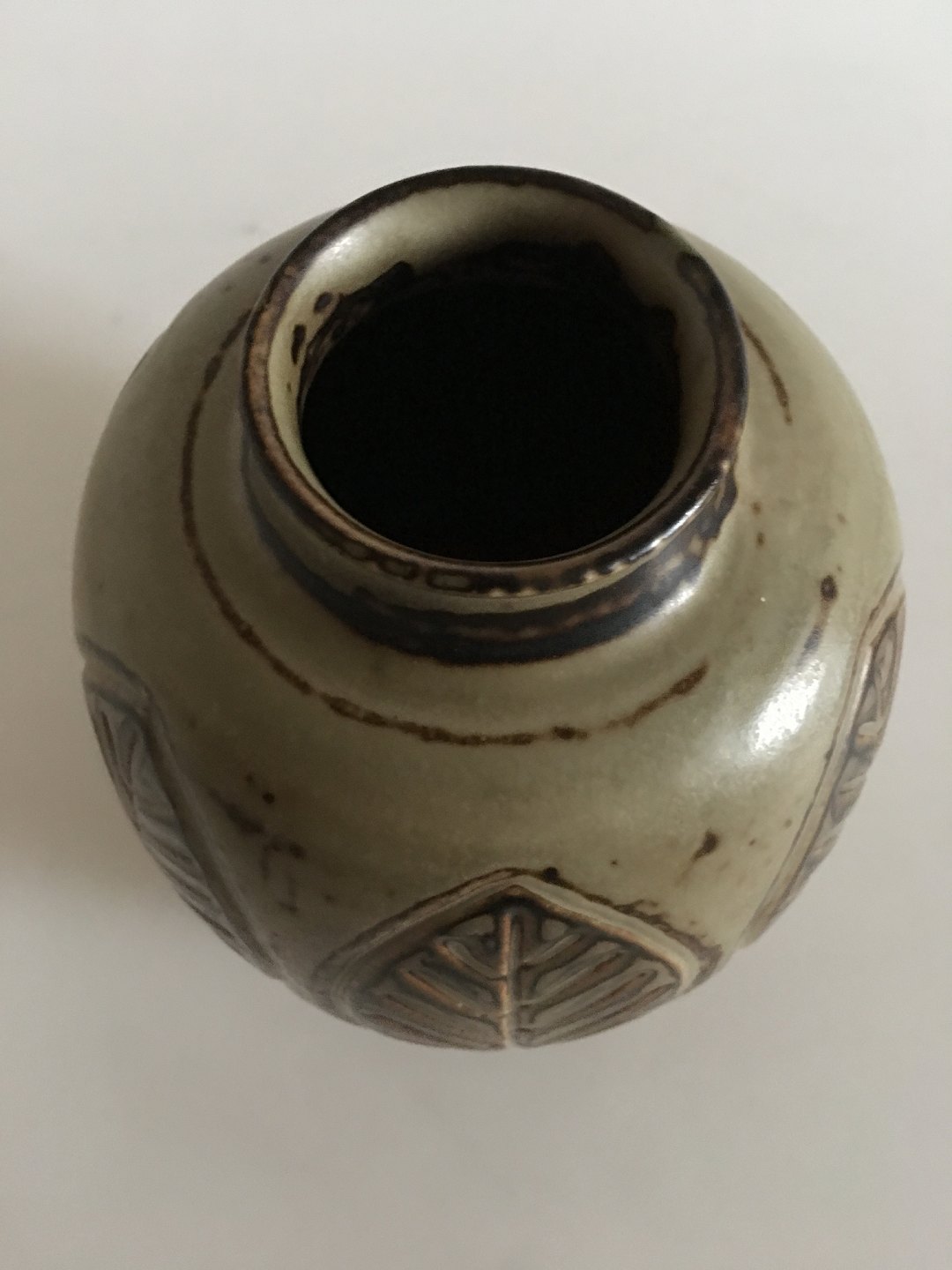 Royal Copenhagen Stoneware Vase by Gerd Bøgelund No 21741. Measures 13,7cm and is in good condition.