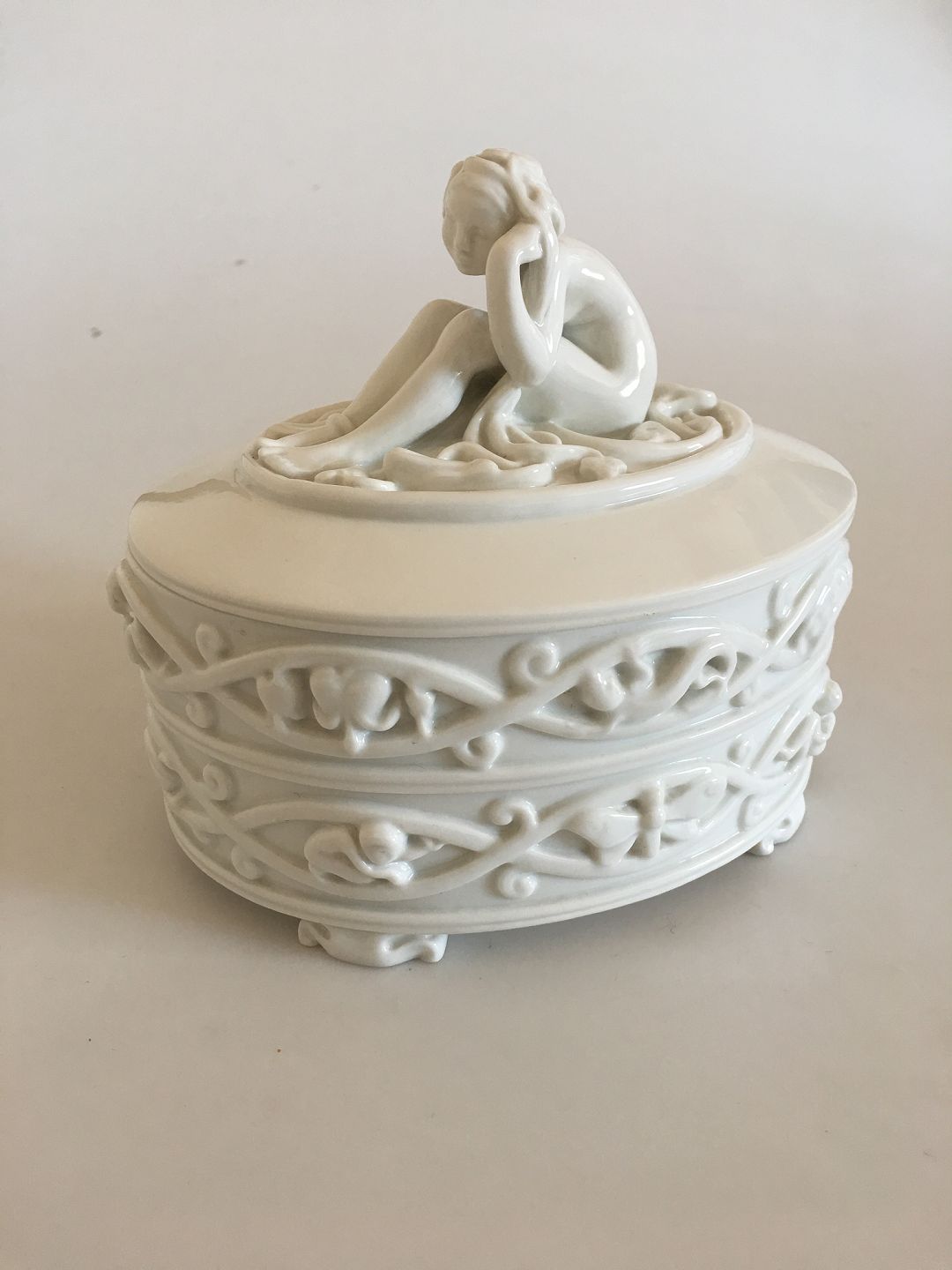 Bing & Grondahl Art Nouveau Bonbonniere with lady, grasshopper, fish, snail and Lizzard Sigfried and Olga Wagner?. Measures 17cm x 16cm and is in perfect condition.