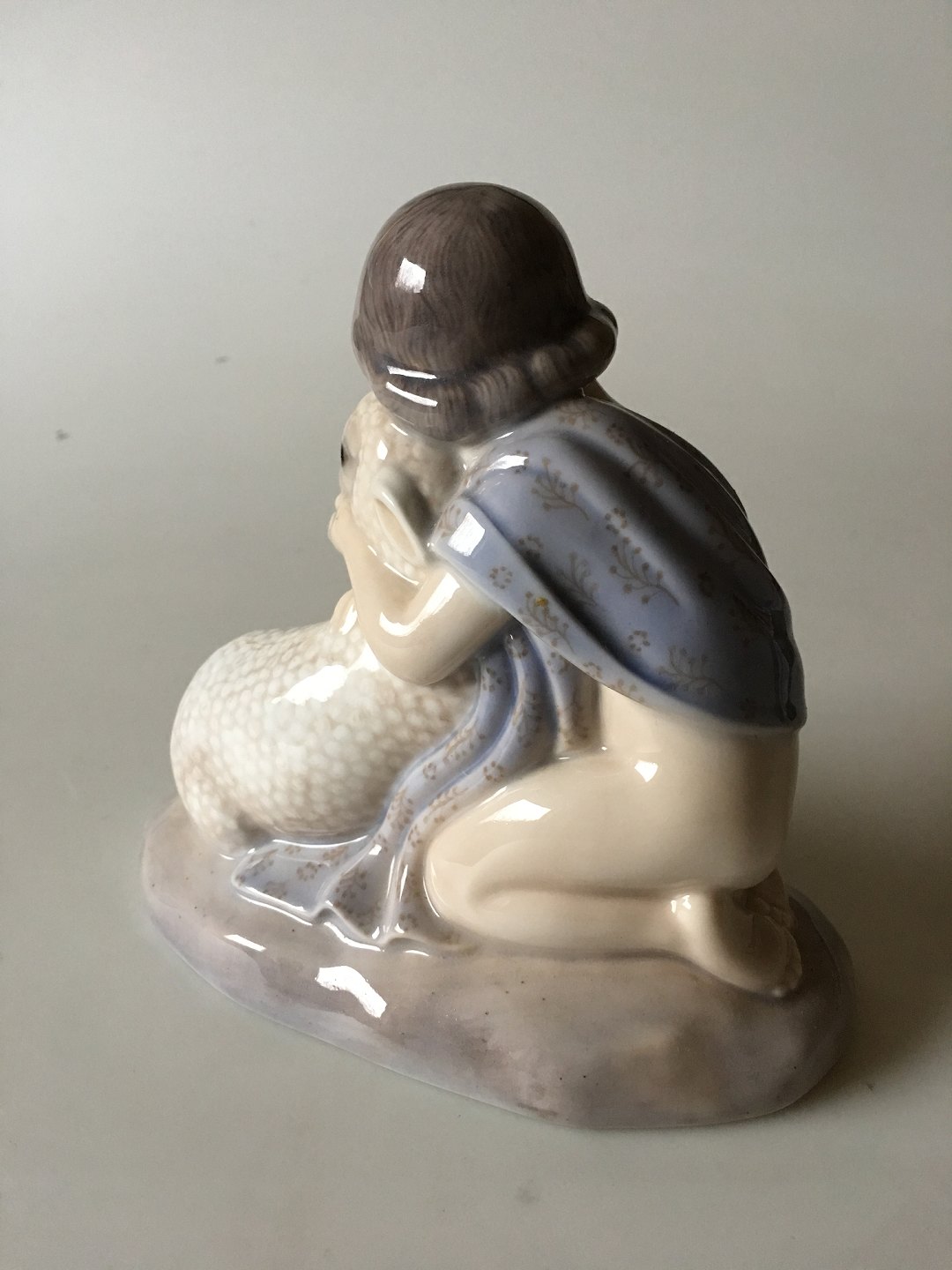 Royal Copenhagen Art Nouveau Figurine Girl with Lamb No 2189. Measures 16cm and is in good condition.
