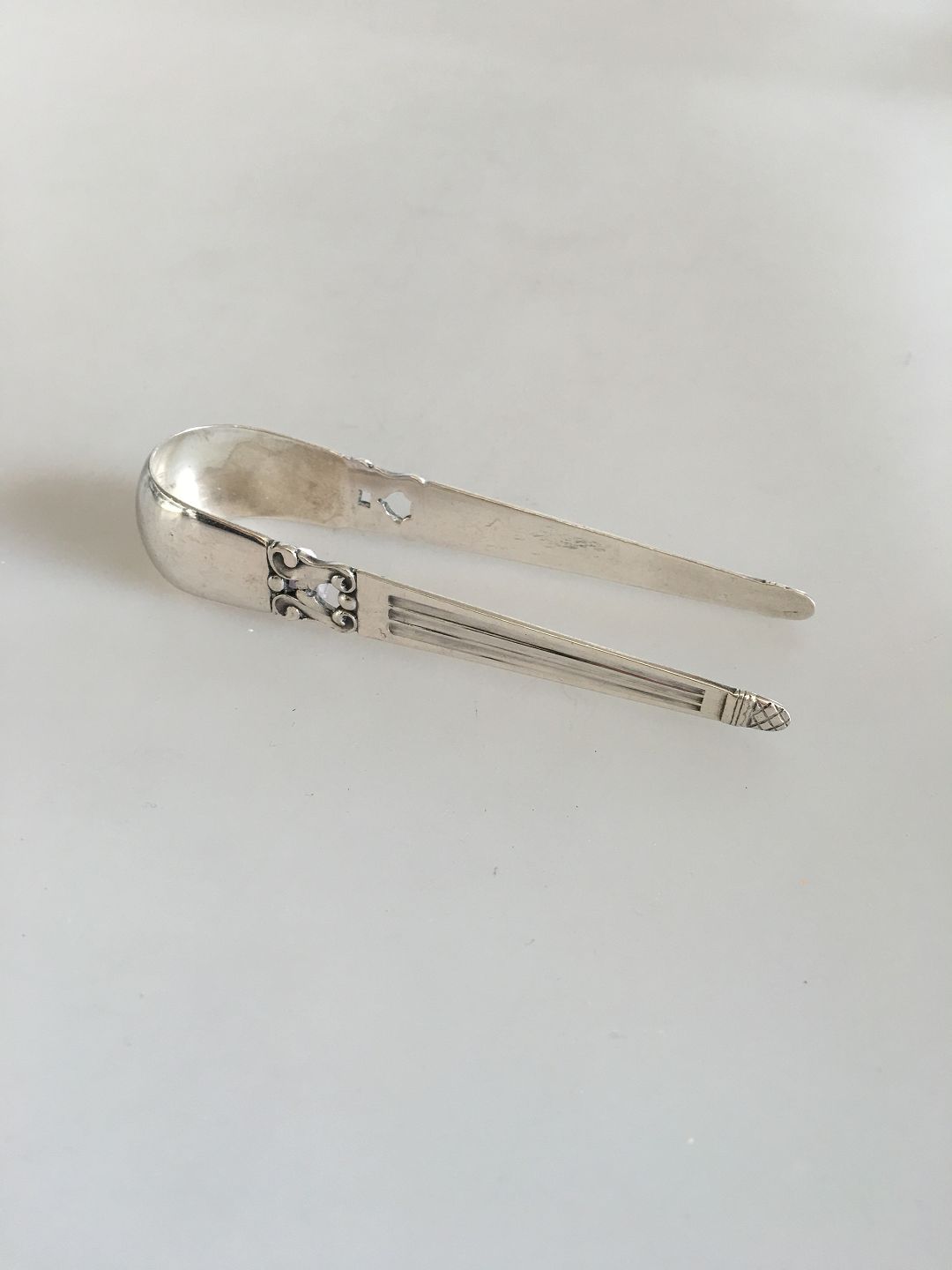 Georg Jensen Sterling Silver Acorn Sugar Tongs No 166. Measures 10.6 cm / 4 11/64 in. Design Johan Rohde.