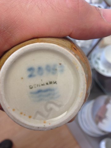 Royal Copenhagen Miniature Stoneware vase by Nils Thorsson No 20957 with fish. Measures 7cm and is in perfect condition.