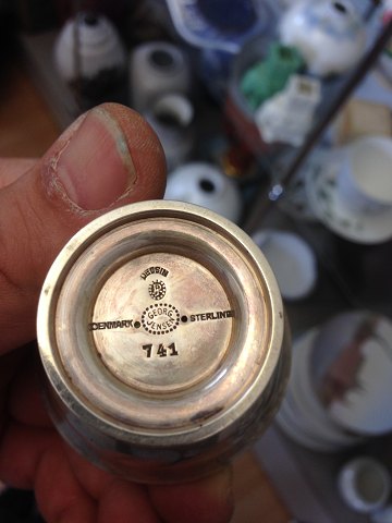 Georg Jensen Sterling Silver Salt Cell Acorn with green enamel No 741. We have 2, one is a little out of round, but enamel is perfect, that one is 4500k.