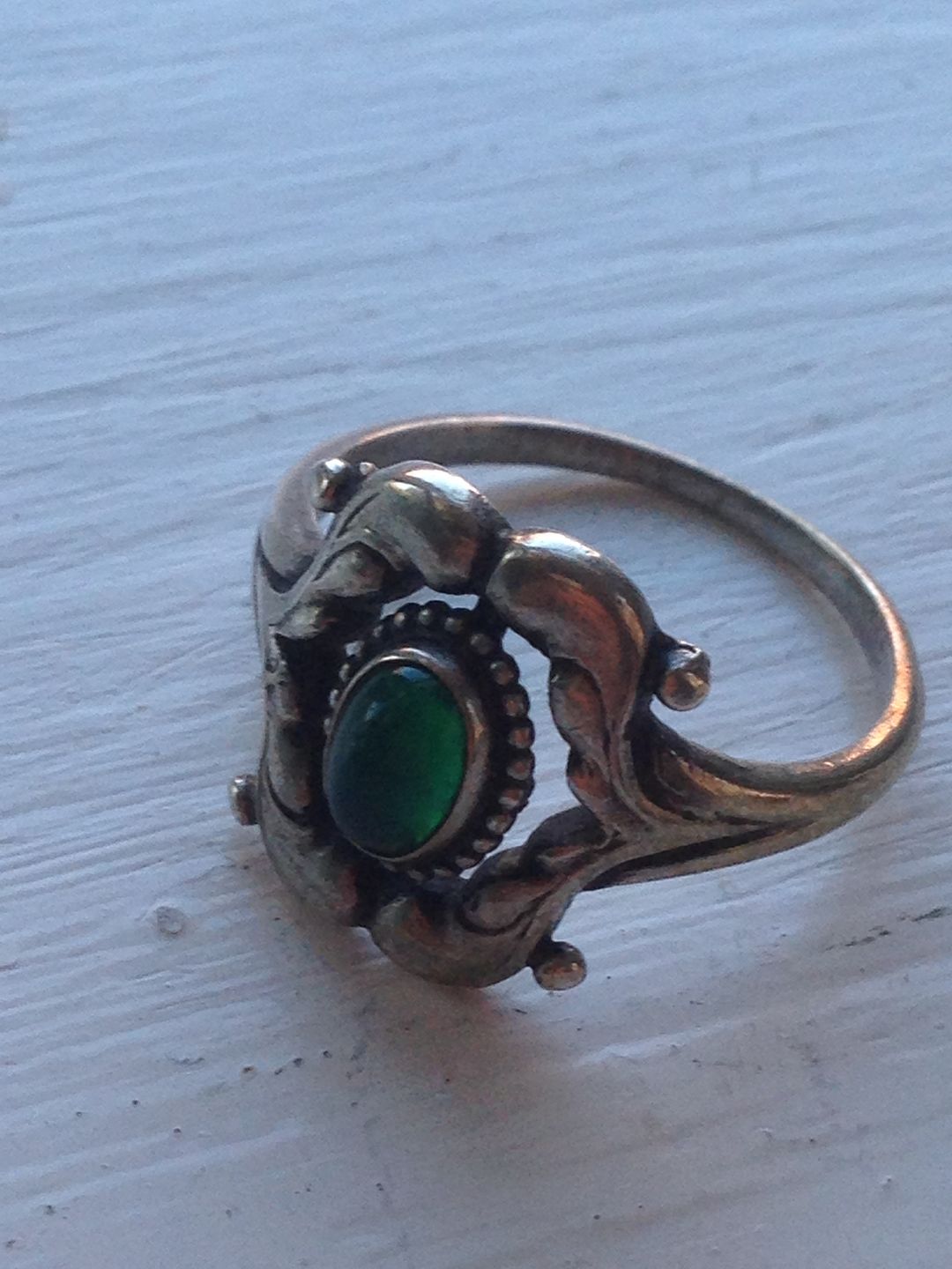 Georg Jensen Sterling Silver Ring No 30 with Green stone. Ring size is 56. Is from 1933-1944