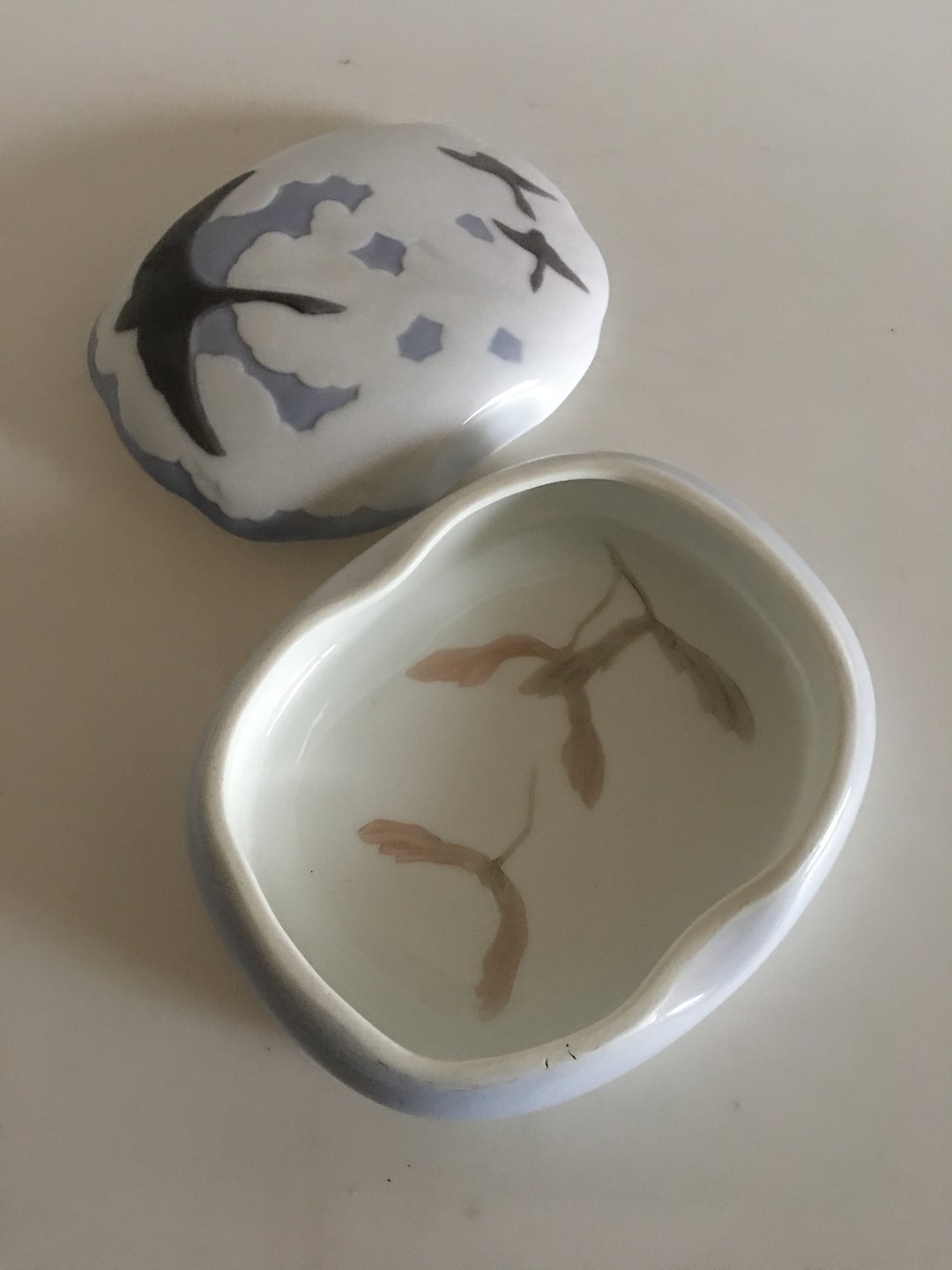 Royal Copenhagen Art Nouveau Lidded Dish with swans No 23/10. Measures 17cm and is in perfect condition.