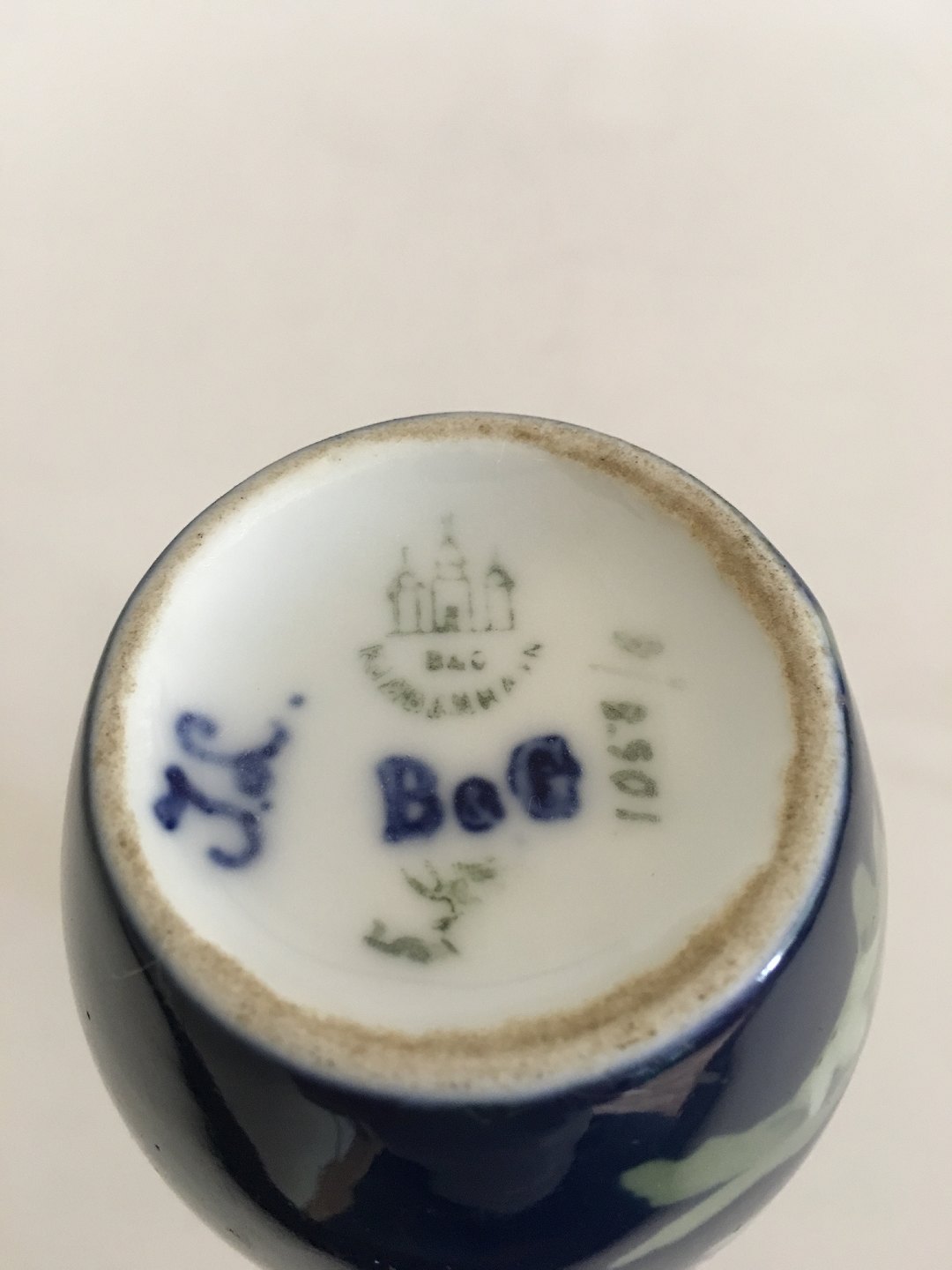 Bing and Grondahl Art Nouveau Vase Unique No 8/8901 Relief. Measures 16,5cm and is in good condition. Signature I do not know.