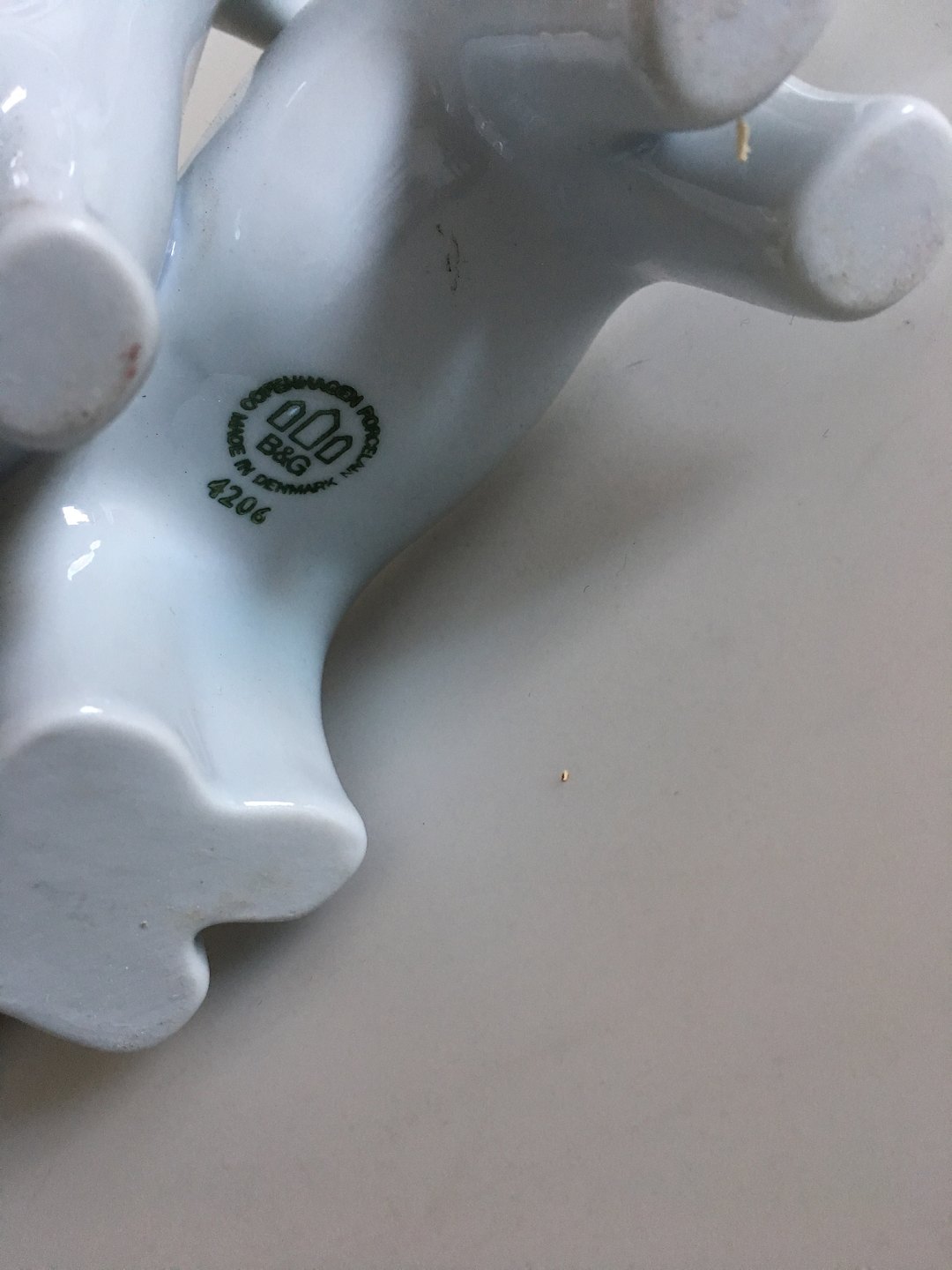Bing and Grondahl Figurine of White Cows No 4206. Designed by Agnethe Jørgensen. Measures 23 cm x 10 cm x 8 cm, and is in good condition.