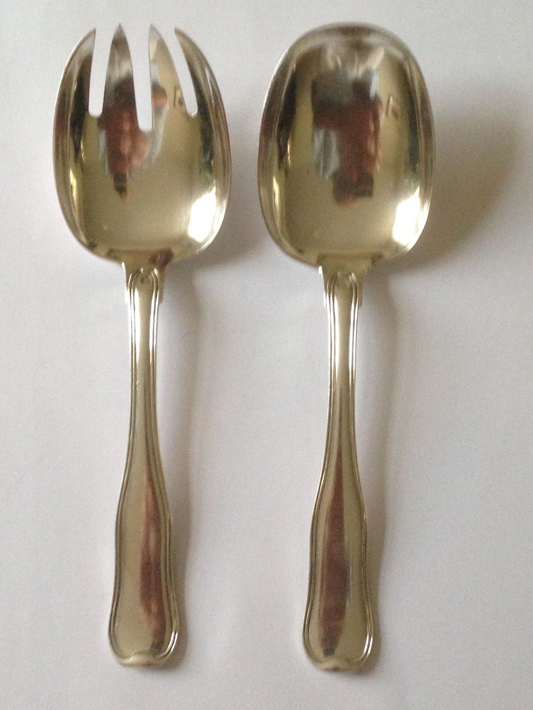 Georg Jensen Sterling Silver Old Danish Salad Set / Serving Set No 115 and No 116. Each measures 20cm / 7 7/8".