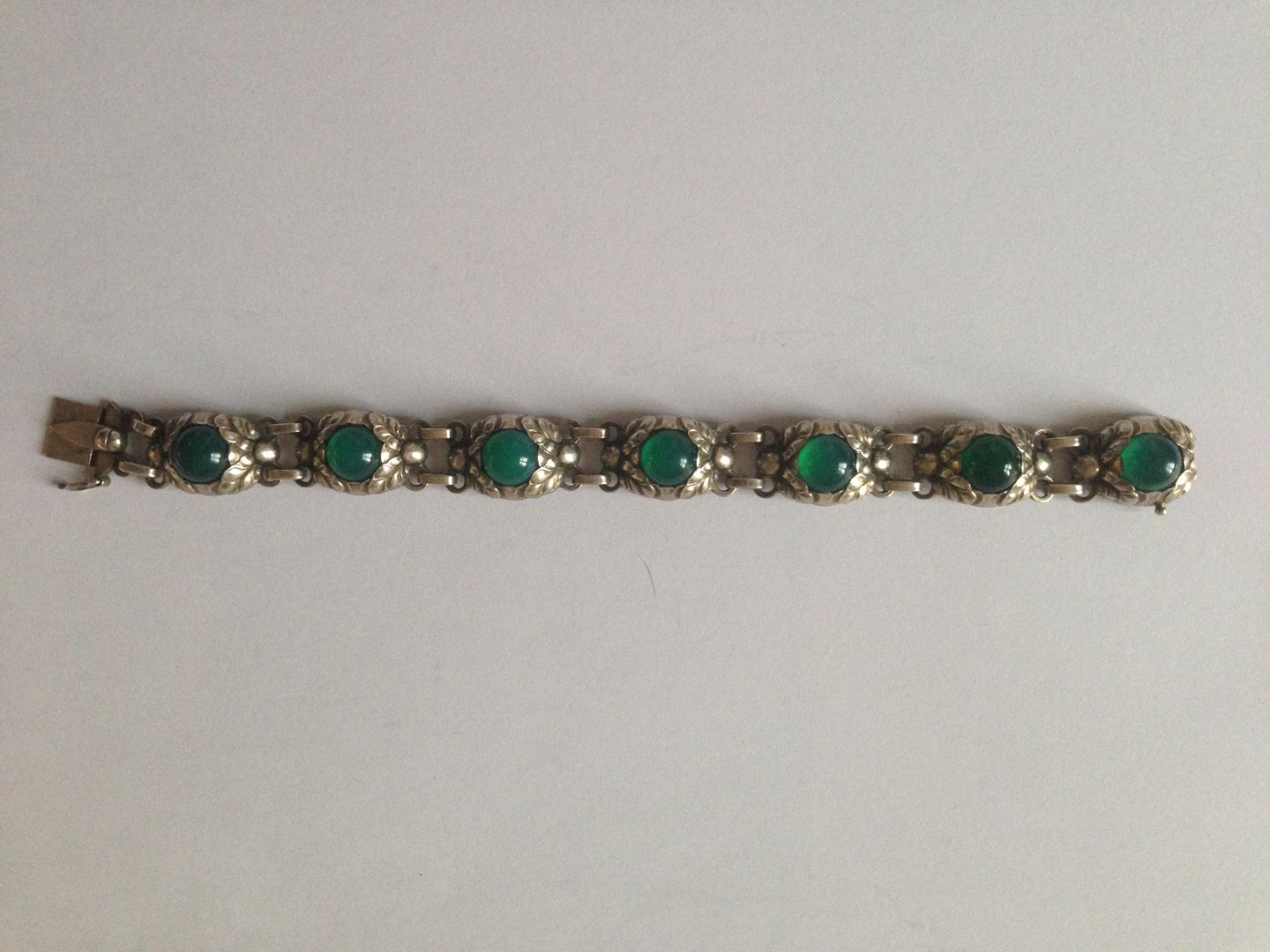 Georg Jensen Sterling Bracelet with green stones No 57B. Measures 18cm and is in perfect condition.