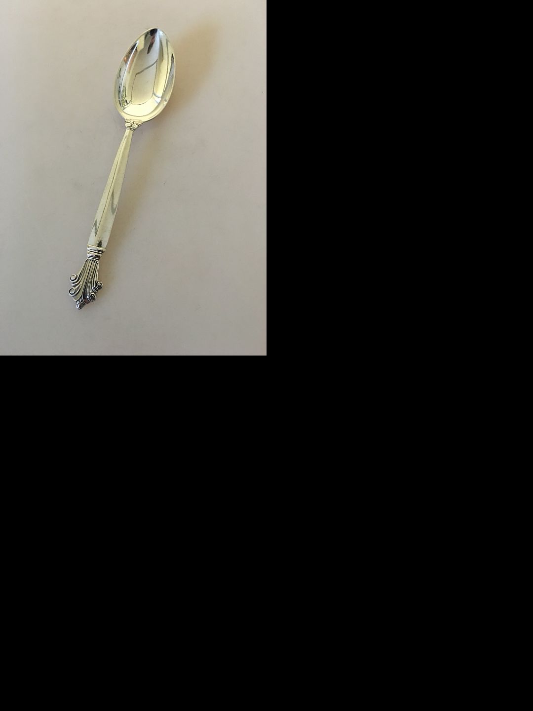 Georg Jensen Sterling Silver Acanthus Dessert Spoon No 021. Measures 17.5 cm / 6 57/64"