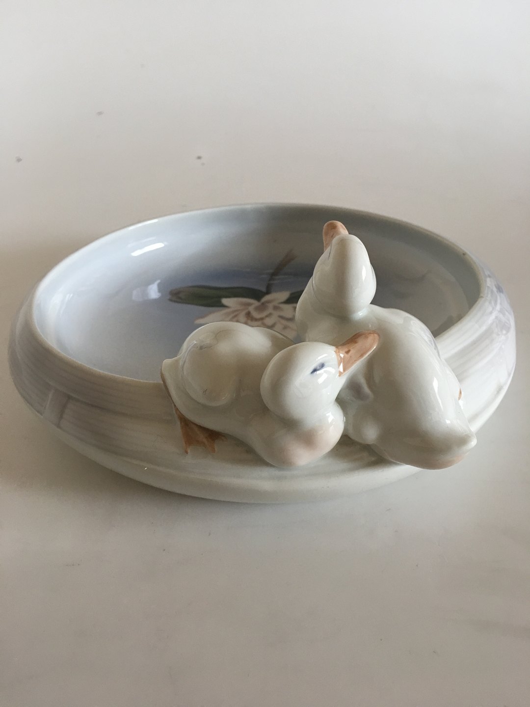 Royal Copenhagen Art Nouveau Bowl with two ducks No 358. Measures 25cm. Is not first quality as it has a factory burning mistake. Otherwise in good condition.