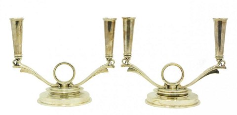 Georg Jensen Sterling Silver Harald Nielsen Pair of 2-arm Candelabra's No 630B. In good condition.