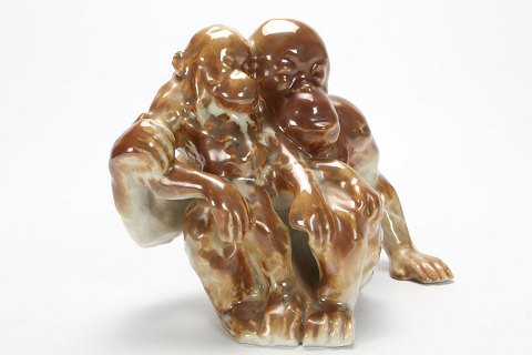 Bing & Grondahl Stoneware Figurine in Luster Glaze by Gauguin/Knud Kyhn Monkey with Young. Measures 25cm x 21cm and is in perfect condition.