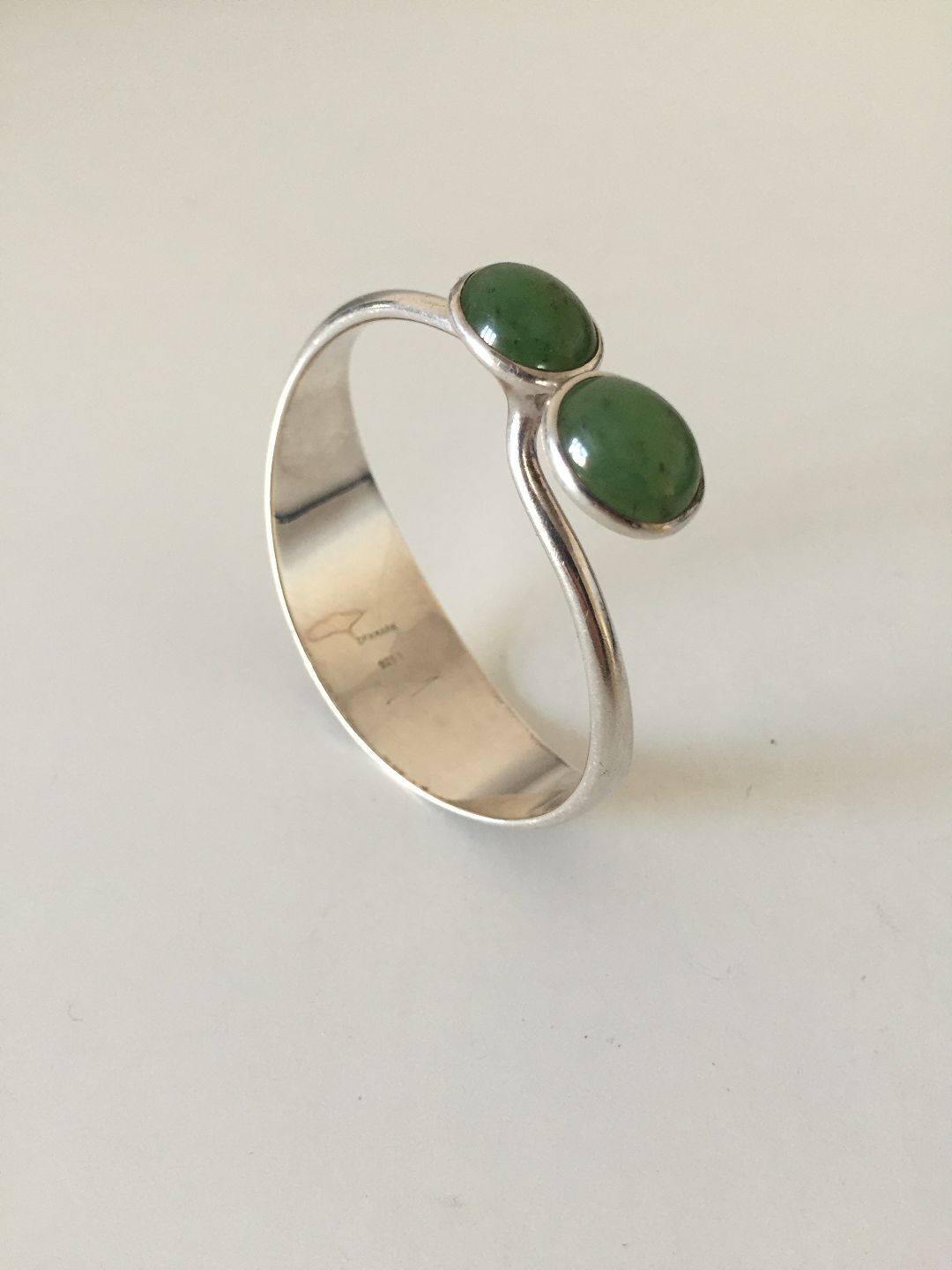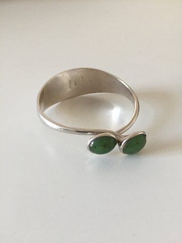 Hans Hansen Sterling Silver Bracelet with green stones. Measures 5.7 cm / 2 1/4". Weighs 40.7 g / 1.43 oz.