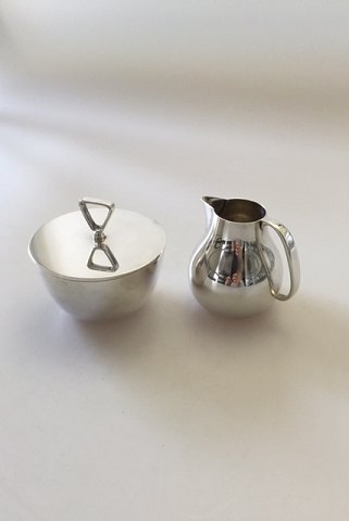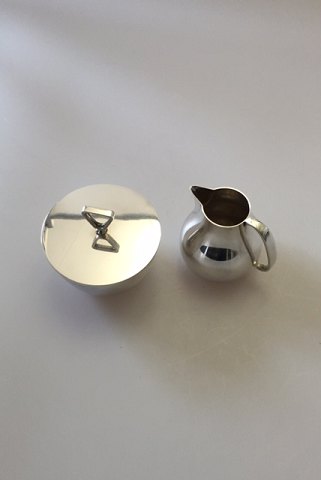 Georg Jensen Sterling Silver Creamer and Sugar Bowl by Sigvard Bernadotte No 1015. Measures 7,5cm and is in good condition.