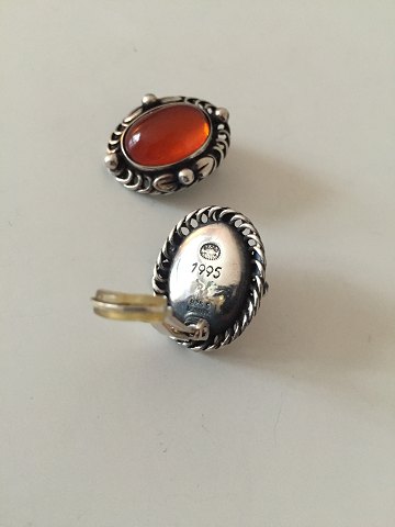Georg Jensen Sterling Silver Annual Earclips with amber from 1995. Measures 2.3 cm / 0 29/32 in. Weighs 14 g / 0.50 oz.