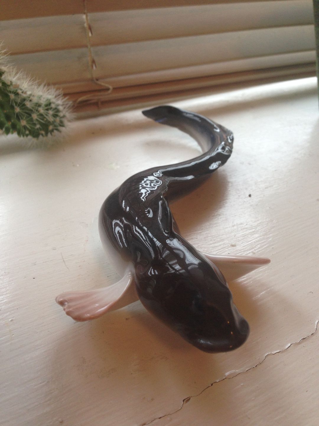 Royal Copenhagen Eel No 463 Figurine. Designed by Liisberg. Measures 20cm. Has a burning makes on the tail and a few mini chips.