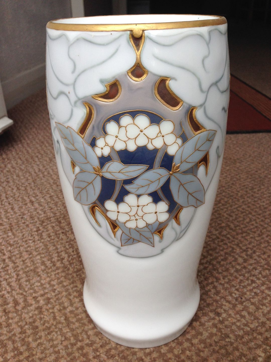 Bing and Grondahl Art Nouveau Unique vase by Elisabeth Drews Kofoed with gold and enamel glaze. Measures 27,5cm and is in perfect condition.