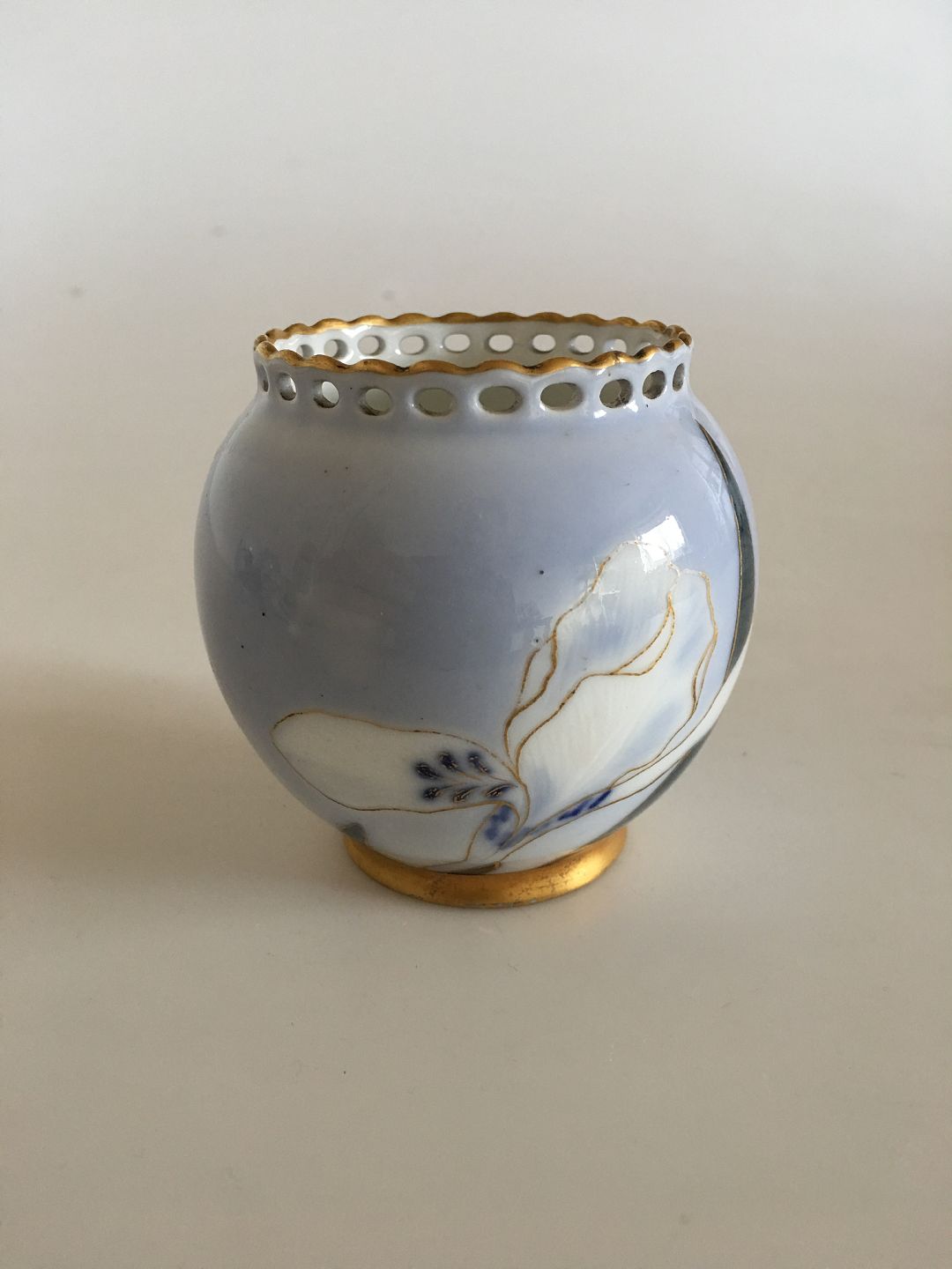Royal Copenhagen Early Art Nouveau vase with Iris and gold. Measures 7,4cm and is in perfect condition.