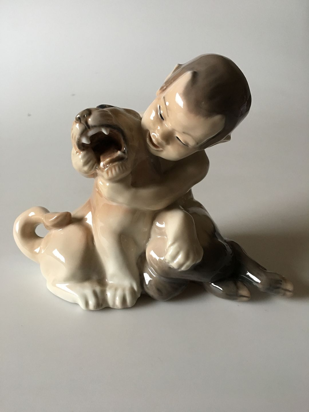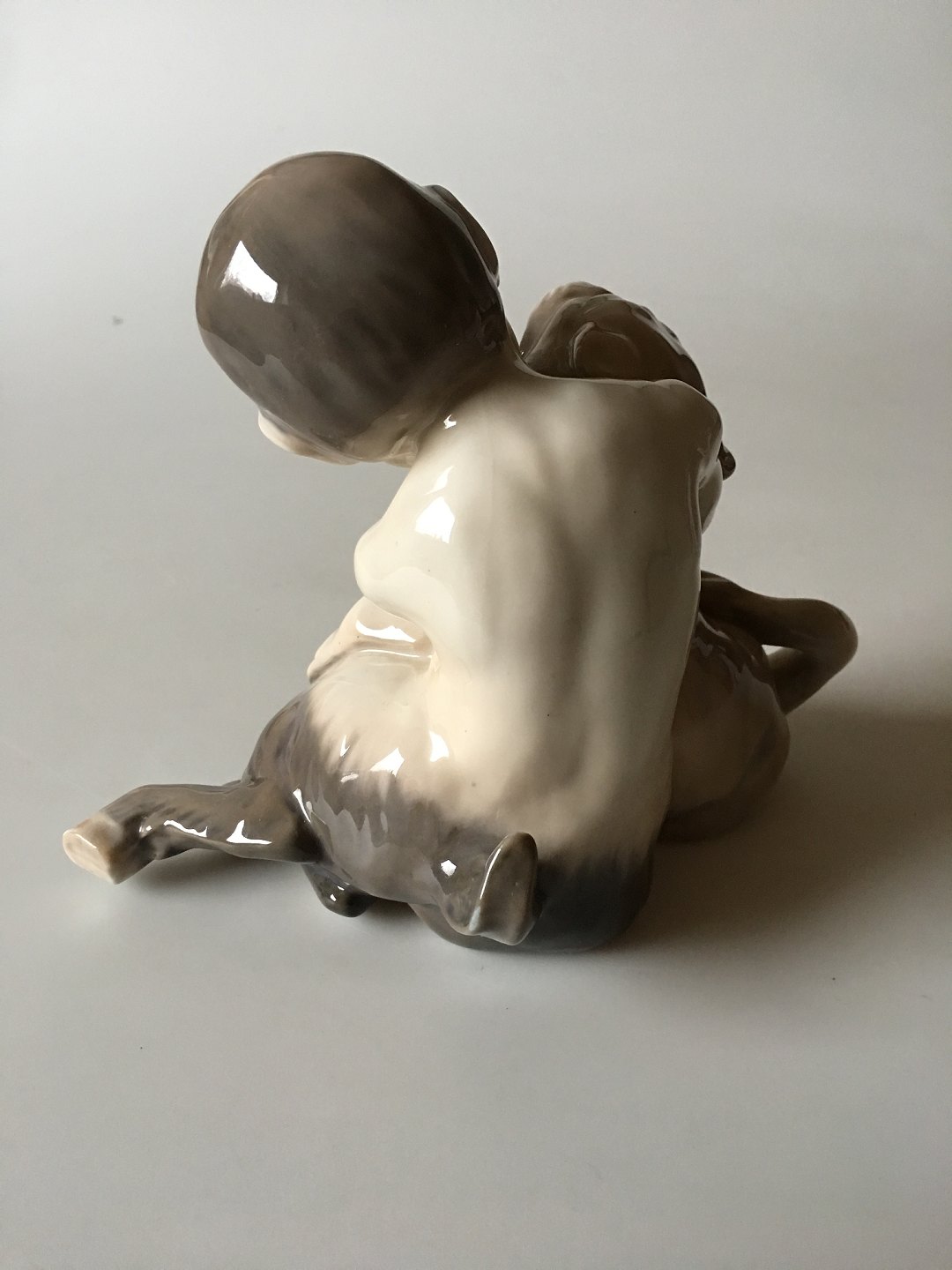 Royal Copenhagen Figurine Faun with lioncub No 2852. Measures 14cm x 18cm and is in perfect condition.