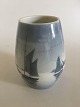 Early Bing & Grøndahl Unique vase by Fanny Garde with ships No 214. Measures 23cm and is in good condition. Very early vase by Fanny Garde and unusual motif.