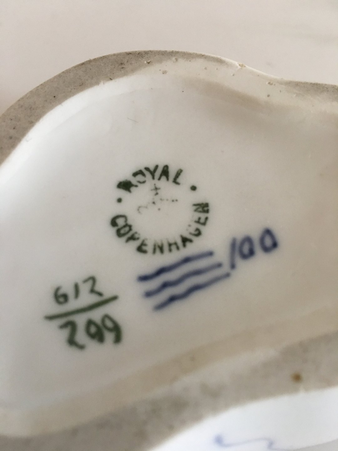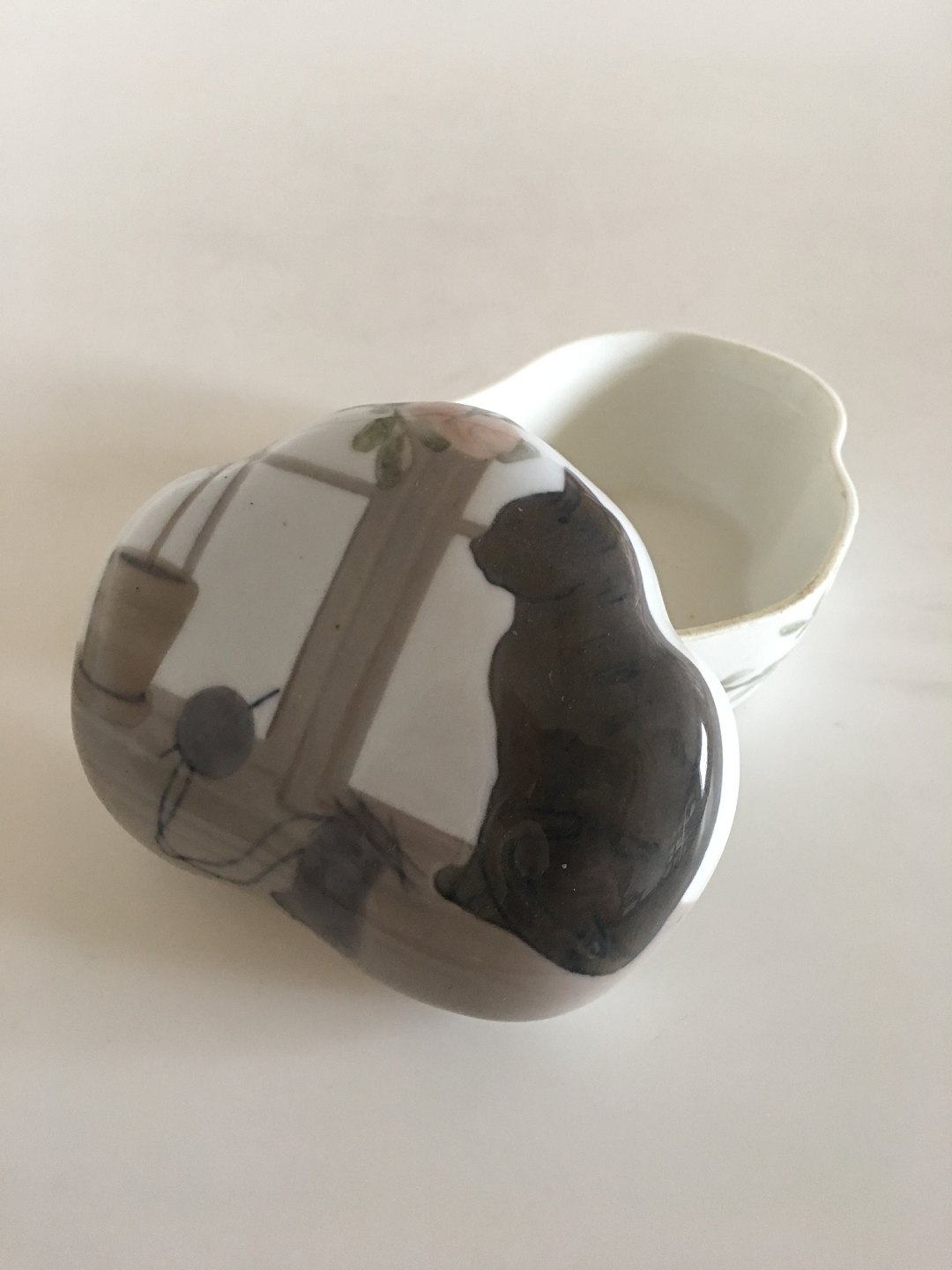 Royal Copenhagen Art Nouveau Lidded dish with Cat No 612/299. Measures 13cm.