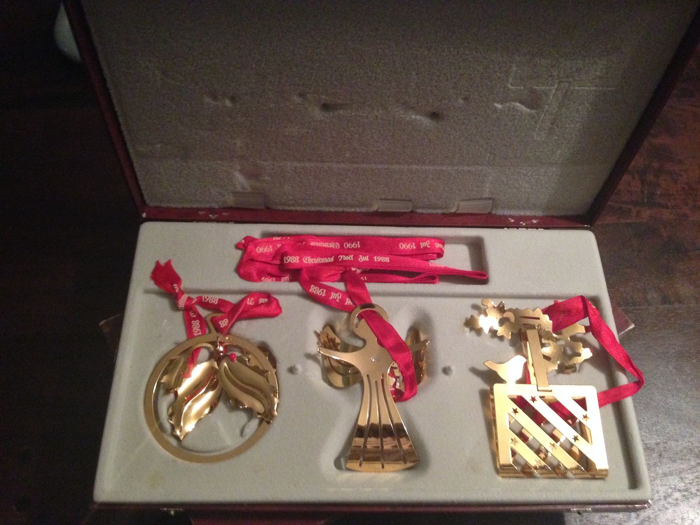 Georg Jensen Christmas Mobile triple box with the years 1988, 1989 and 1990. Used but intact, and with ribbon.