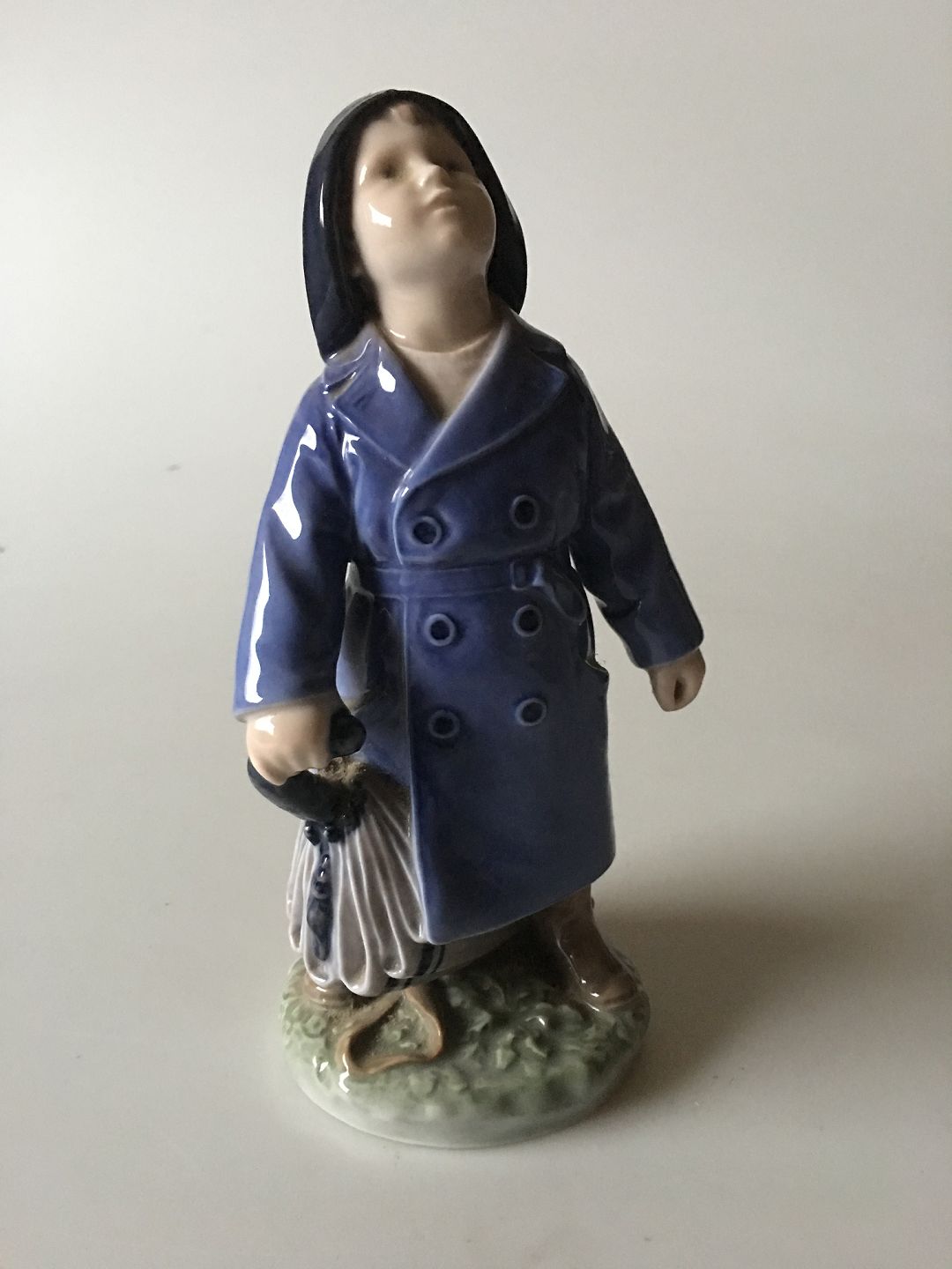Royal Copenhagen Figurine Boy with Umbrella No. 3556. Measures 18,5 cm and is in good condition.