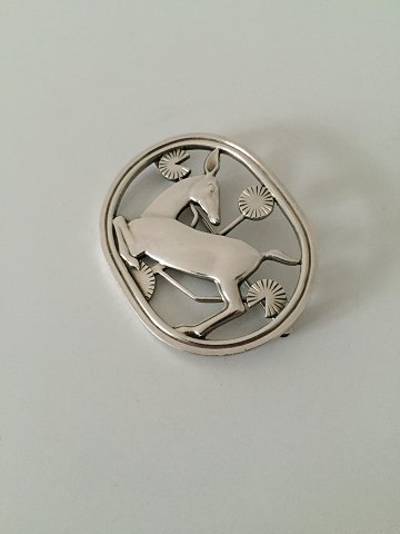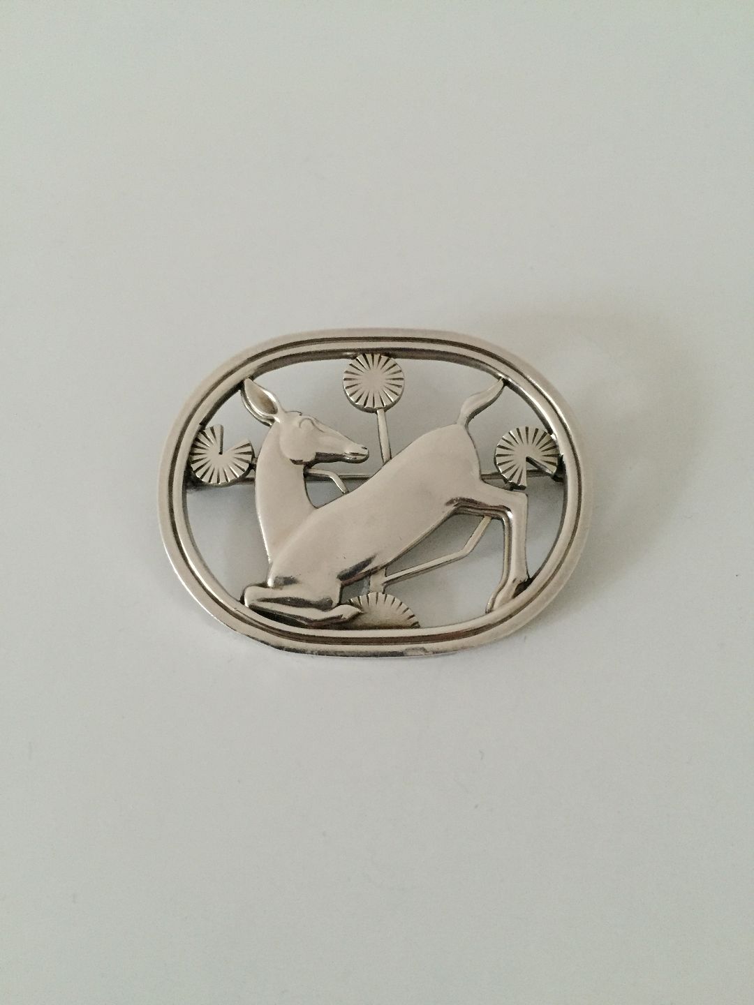Georg Jensen Sterling Silver Brooch with deer No 256. Measures 4.5 cm x 3.5cm. Weighs 15 g / 0.55 oz.(Note NO GJ hallmark)
