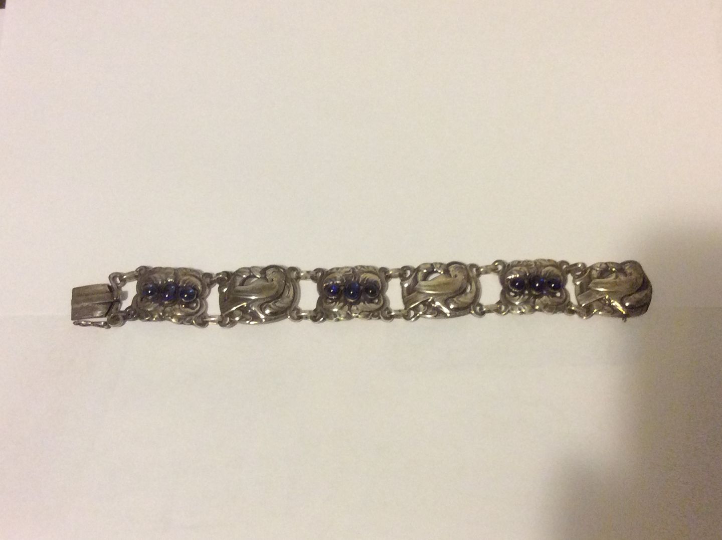 Georg Jensen Sterling Silver bracelet No 14 from 1933-1944 with purple stones. Measures 19cm and is in good condition.