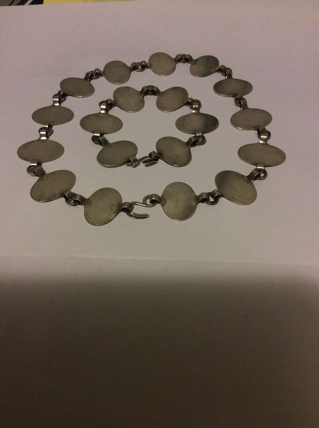 Georg Jensen Sterling Silver Necklace and Bracelet Set No 141 Nanna Ditzel. Measures 20cm og 43cm.