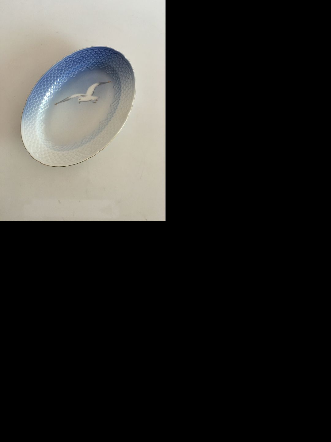 Bing & Grondahl Seagull with Gold Oval Tray No. 18. Measures 25.5 cm / 10 3/64 in. x 18 cm / 7 3/32 in.