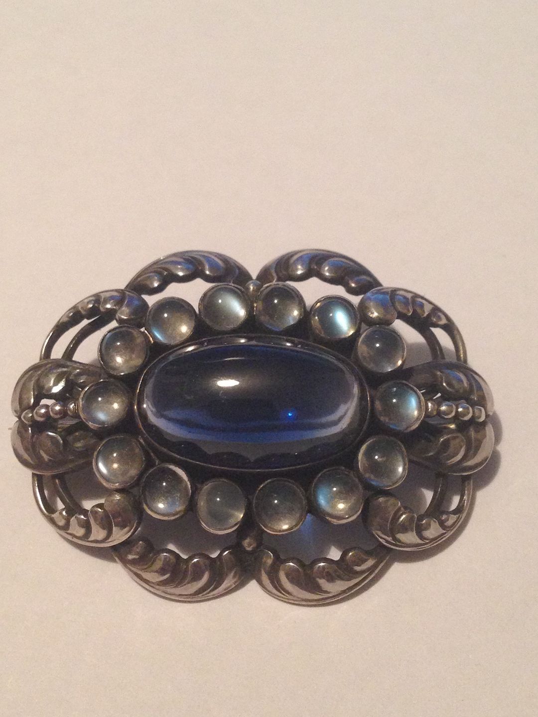 Georg Jensen Sterling Silver Brooch with 15 stones No 160. Measures 4,2cm.