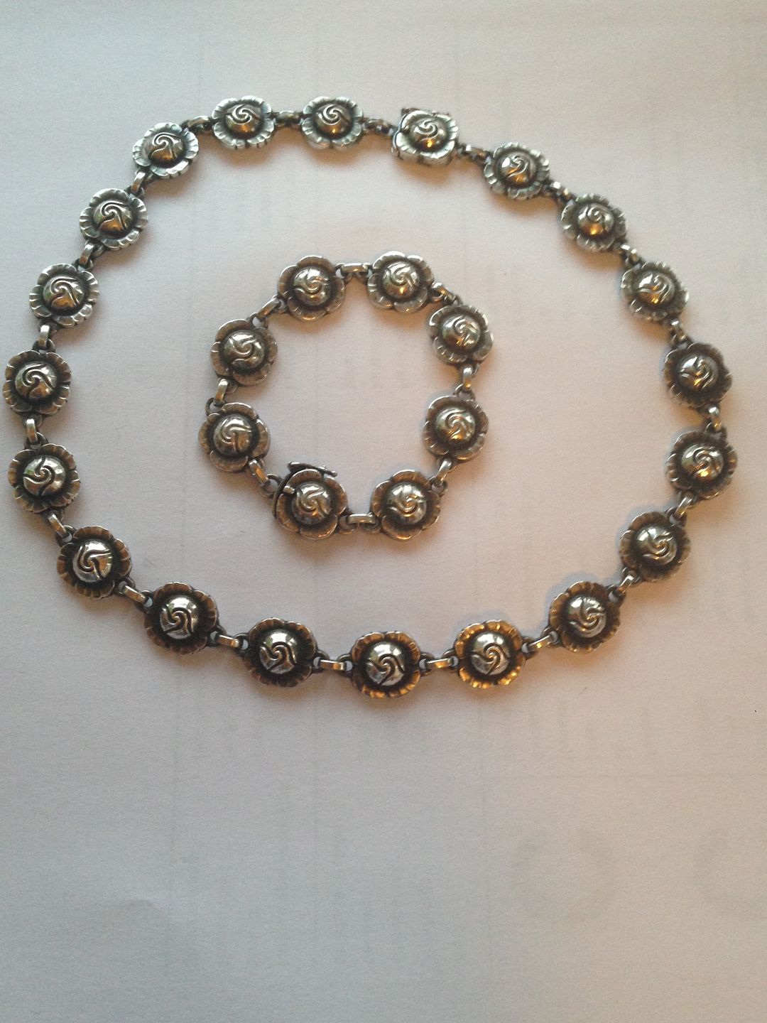 Georg Jensen Sterling Silver Necklace and Bracelet No 44. Measures 37cm and 15,8cm. Bracelet is from 1933-1944. Necklace is post 1945.