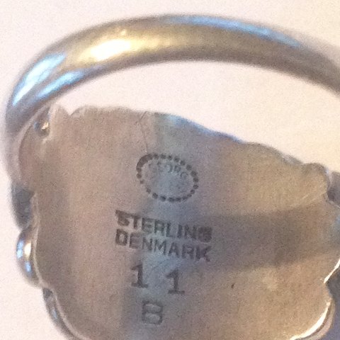Georg Jensen Sterling Silver Ring with red coral No 11B. Ring size 55.