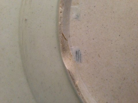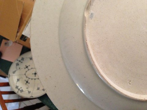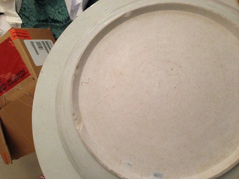 Royal Copenhagen Antique Blue Fluted Dish from around 1790. Measures 33.5 cm / 13 3/16 in. Has a chip on the rim, and a few on the backside. And a small hairline crack.