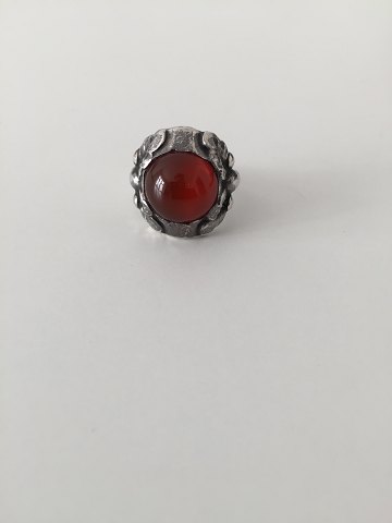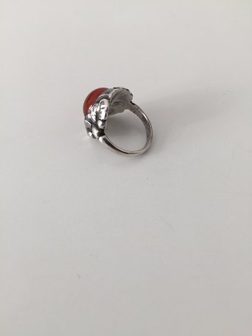 Georg Jensen Sterling Silver Ring with red stone No 11A from 1933-1944. Ring Size 50 / US 5 1/4. Weighs 5 g / 0.18 oz.