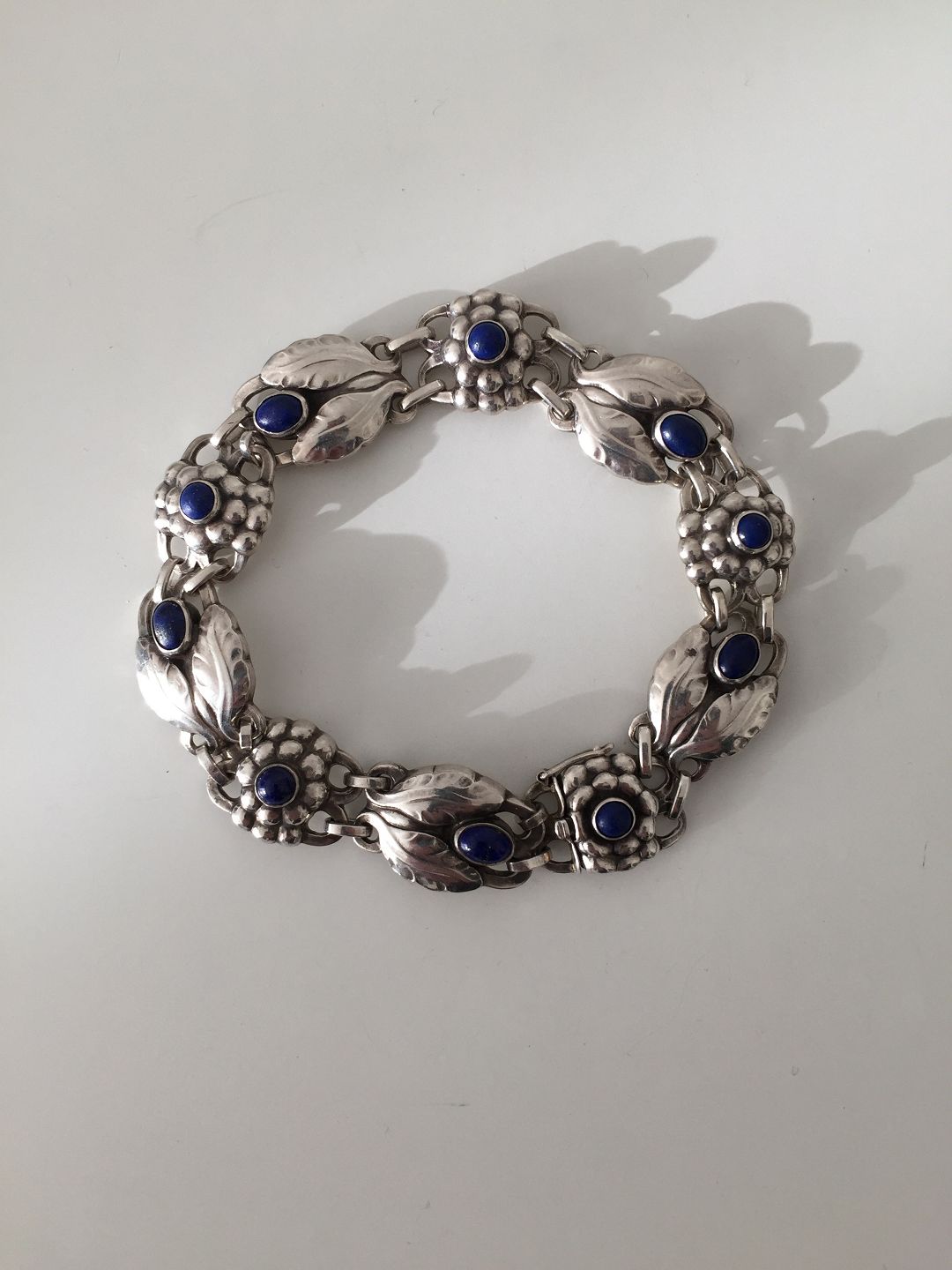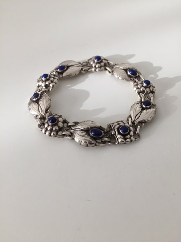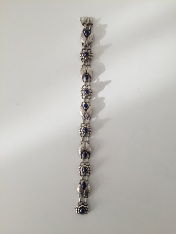 Georg Jensen Silver Bracelet with Lapis Luzuli No 3 from the 1930's. Measures 24cm. Weighs 33g / 1,16oz